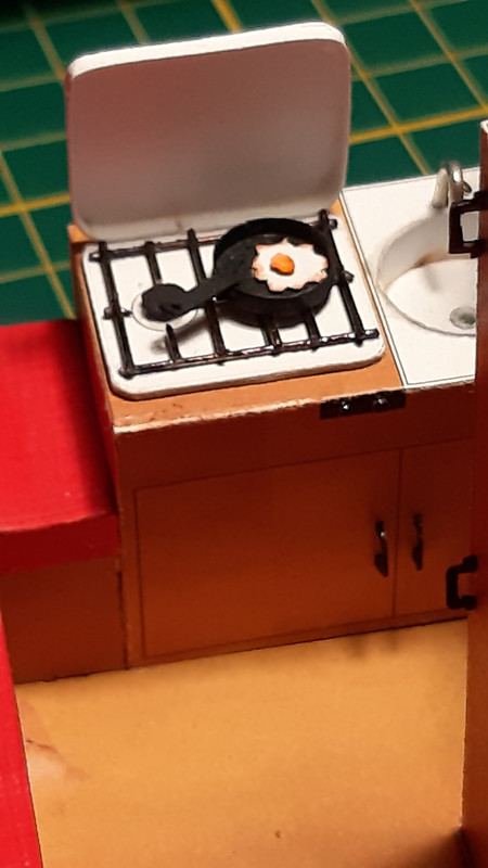 Kuchenka w wersji Finalnej..... Napiszę, krótko. Tak właśnie widziałem ją w mojej głowie i udało mi się to zrealizować w 100%. Teraz tyko muszę pomyśleć jak to dobrze pokazać....??? W sumie przez drzwi sporo widać, ale planuję też otwierane okna i boję się, że te mogą być "dodatkową" przeszkodą w napawaniu się tym detalem.